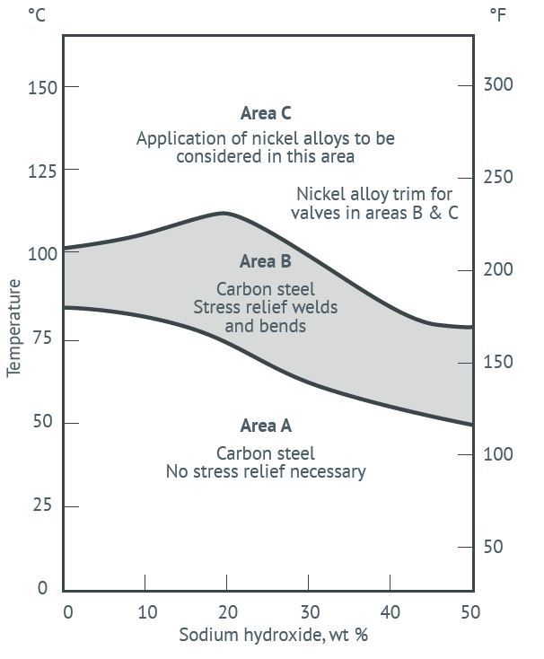 PWHT(応力除去熱処理)を適用する境界線:NaOHサービスグラフの読み方