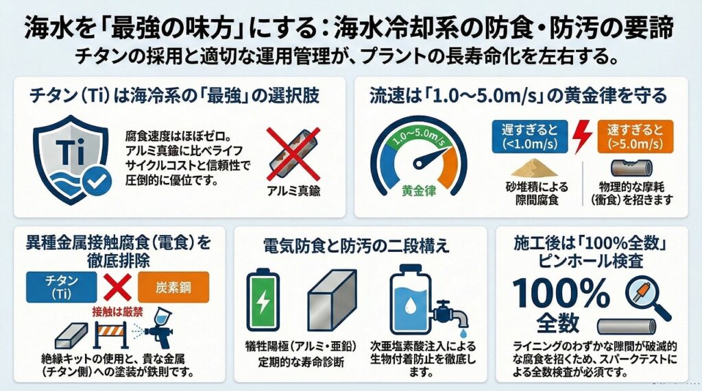 海水冷却系の防食・防汚:チタン選定と電気防食の実務